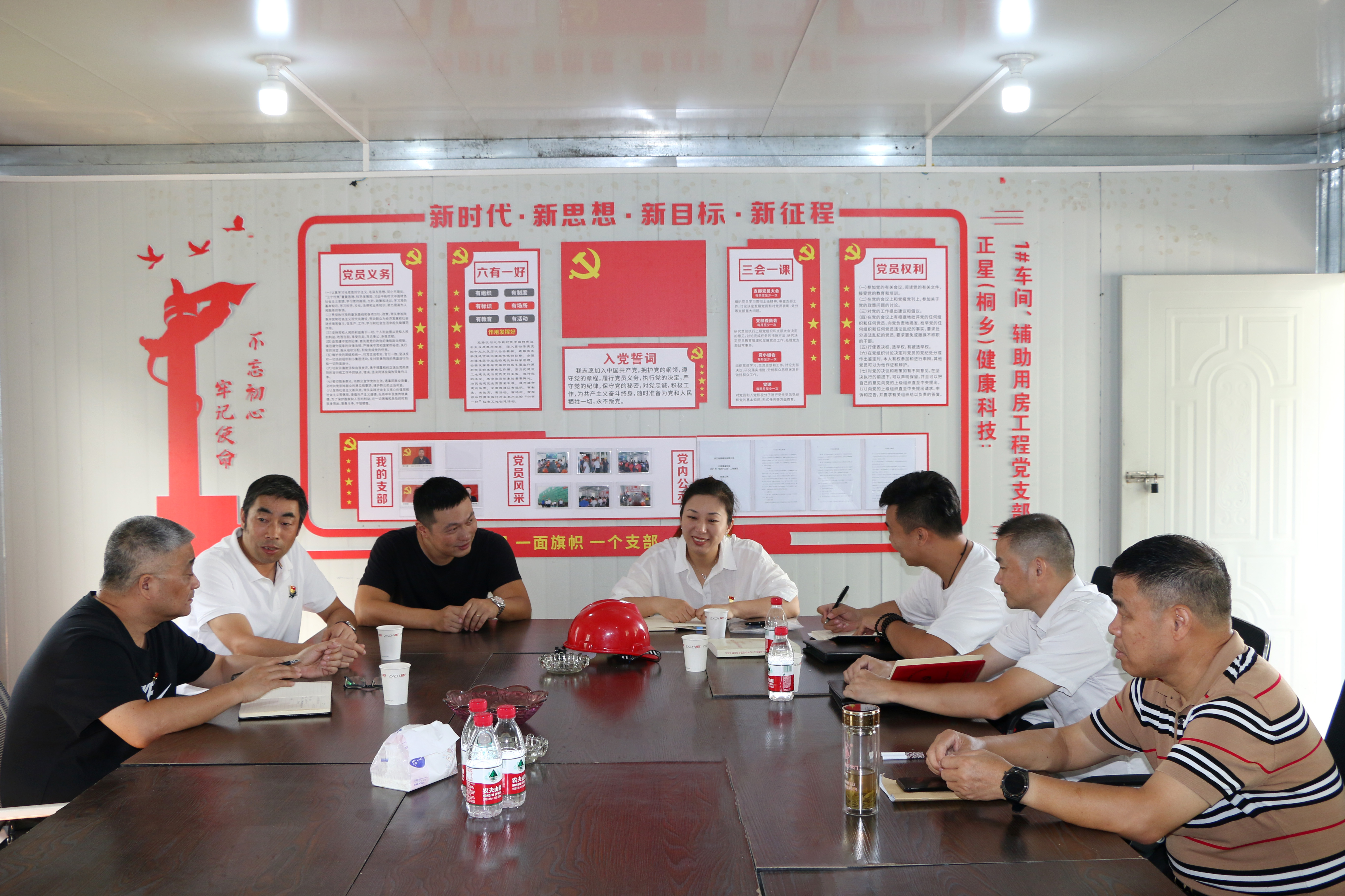 2021年以來,浙江崇德建設有限公司通過“生產結合支部”、“黨建促基建、基建強黨建”,深入開展以“六有一好”為主要內容的建筑行業“紅色工地”建設活動。正星(桐鄉)健康科技有限公司1 # 車間、輔助用房(年產2 5 萬臺健身器材、3 0 0 萬套健身器材配件新建項目)通過制定實施方案,成立領導小組,明確工作職責,強化舉措落實;設立臨時黨組織,委派黨員骨干擔任黨建指導員,全面負責指導、協調紅色工地的黨建工作;制定出臺符合工地實際的黨組織制度;推行紅色驛站、工地公約、工地事務團和工地議事會;營造濃厚氛圍,動員全員參與,做到了有1個黨建指導員、1支黨員隊伍、1個紅色先鋒站,建好1個精品工程。目前,該項目已順利通過了桐鄉標化工地、嘉興市優質結構驗收,真正實現了黨建、生產齊頭并進,黨建與工程建設管理同頻共振,有效提升了“黨建+工程建設”水平。